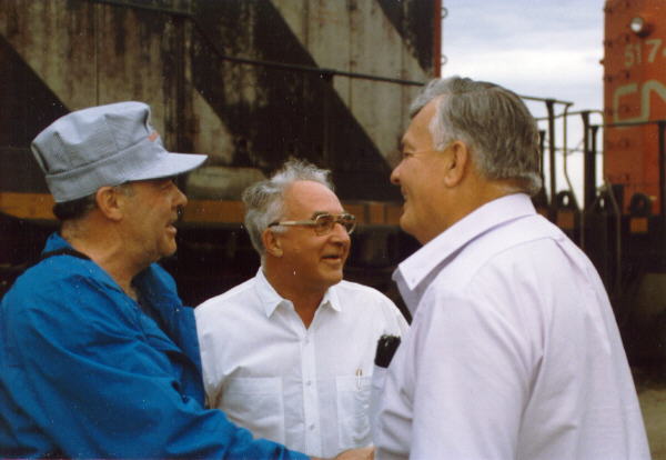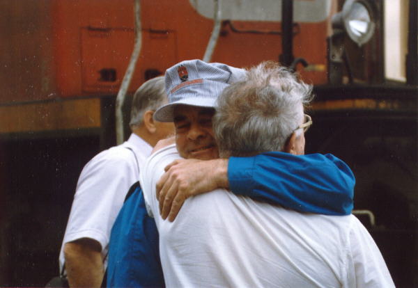 On completion of Lyles last trip, he greets his very dear friend and fellow C.N. engineman, Johnny Wareham.