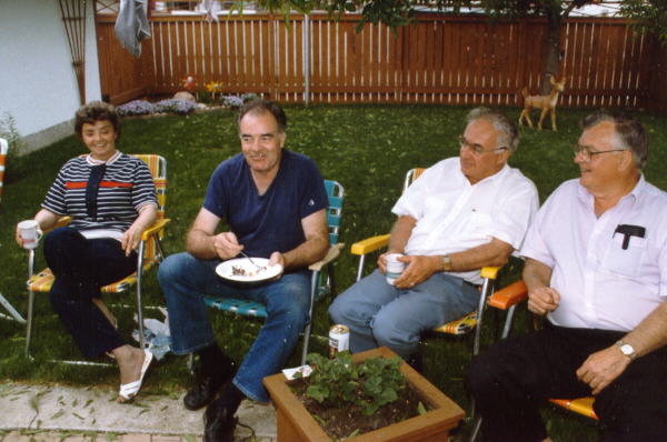 Lunch back at the Corbets after that "Last Run.". L/R: Denise, Lyle, John Wareham, Bill Peden.