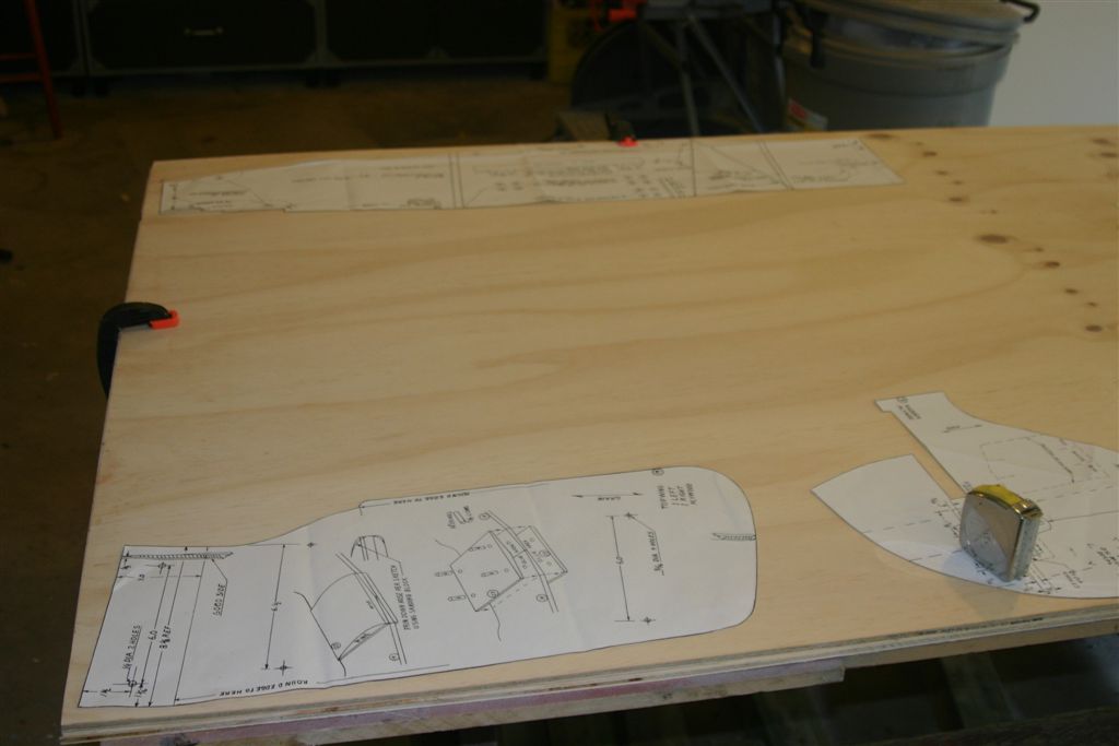 With the dog-days of summer now here, I decided to pull out the plans I ordered back in January and start to get moving on building the Tiger Moth. Two weekends ago, I cut out out the plans and this past weekend started tracing cutting out the plywood pieces. The garage is a major mess but I was able to get enough room to work. I set up the picnic table again as a work bench and am away to the races. Last evening I cut out the top and bottom wings and the rudder. Allister's P51 is visible in the lower corner of the first photo. |