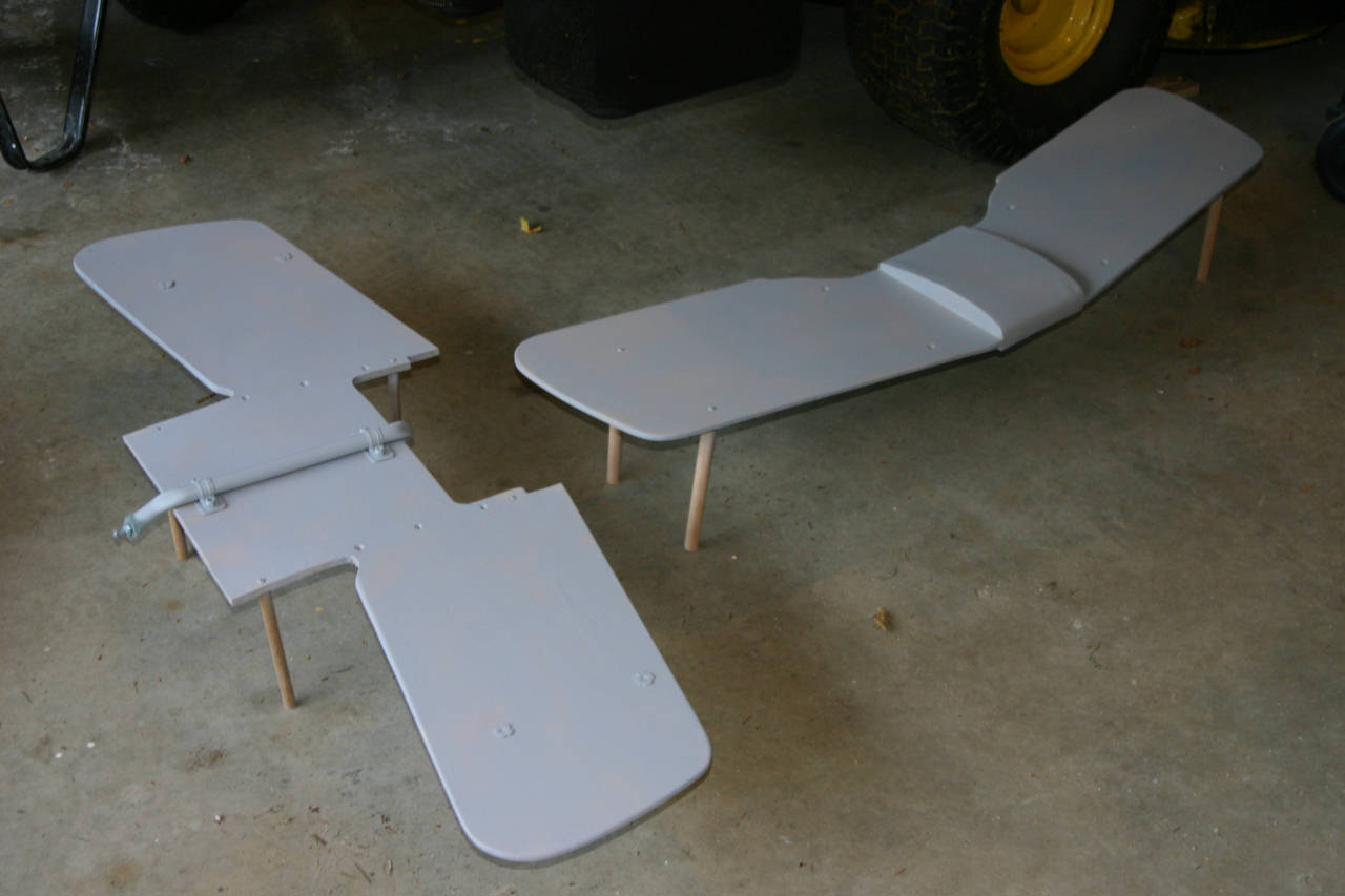 The serious painting has begun. After several coats of sanding sealer the grey undercoat was sprayed onto all pieces. With the primer completed I have started the final painting - a nice deep yellow the closely matches the colour of the RCAF Tiger Moths during World War 2. |